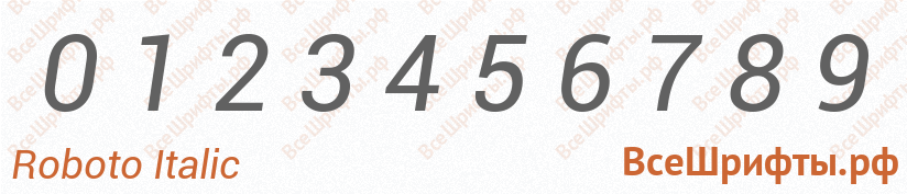 Предварительный просмотр шрифта «Roboto Italic» с цифрами (0 1 2 3 4 5 6 7 8 9).