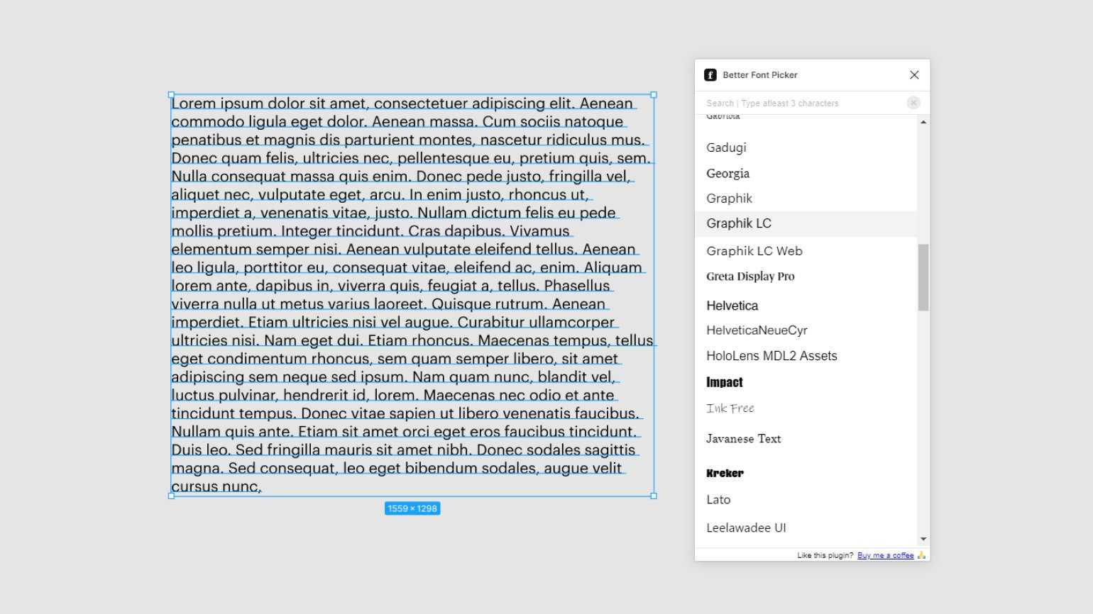 В Figma не очень удобно выбирать шрифты, так как они не отображаются на макете сразу. С помощью плагина Better Font Picker вы сможете в отдельном окне посмотреть, как выглядит каждый шрифт, и быстрее принять решение — использовать его или нет: