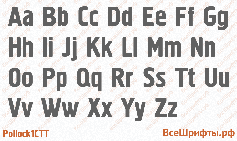 Предварительный просмотр шрифта «Pollock1CTT» с прописными и строчными латинскими буквами (английский алфавит A-Z и a-z).