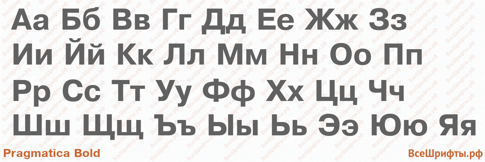 Предварительный просмотр шрифта «Pragmatica Bold» с прописными и строчными русскими буквами (кириллица, русский алфавит А-Я и а-я).