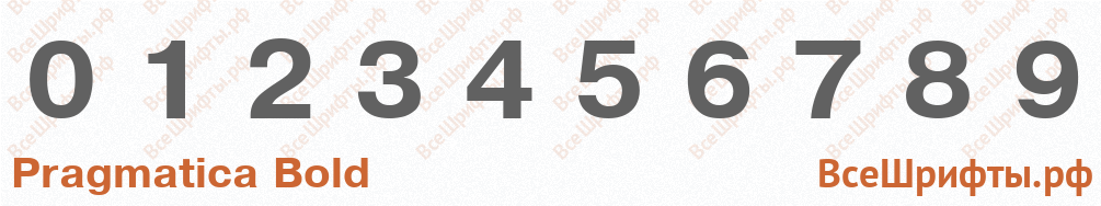 Предварительный просмотр шрифта «Pragmatica Bold» с цифрами (0 1 2 3 4 5 6 7 8 9).