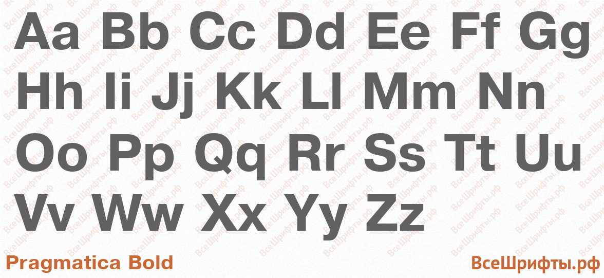 Предварительный просмотр шрифта «Pragmatica Bold» с прописными и строчными латинскими буквами (английский алфавит A-Z и a-z).