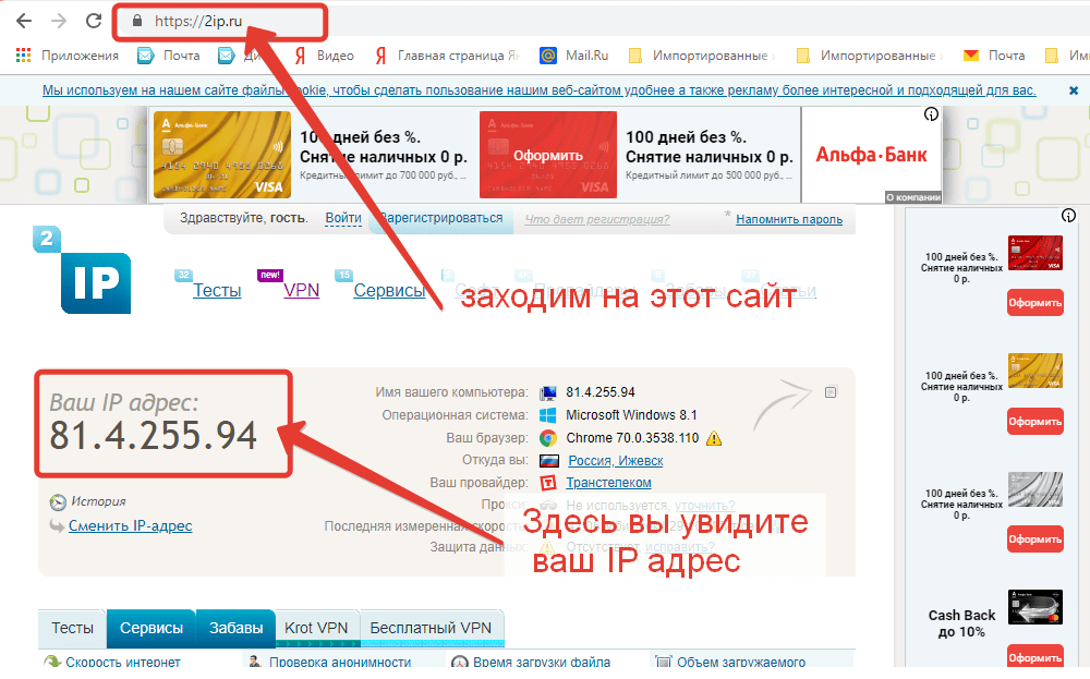 1. Чтобы его узнать надо перейти на 2ip.ru.