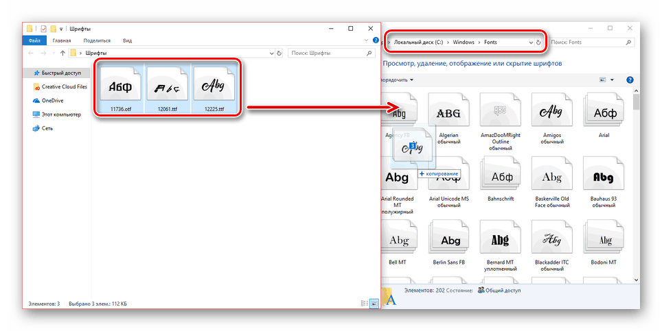 Подробнее: Как устанавливать шрифты в Windows