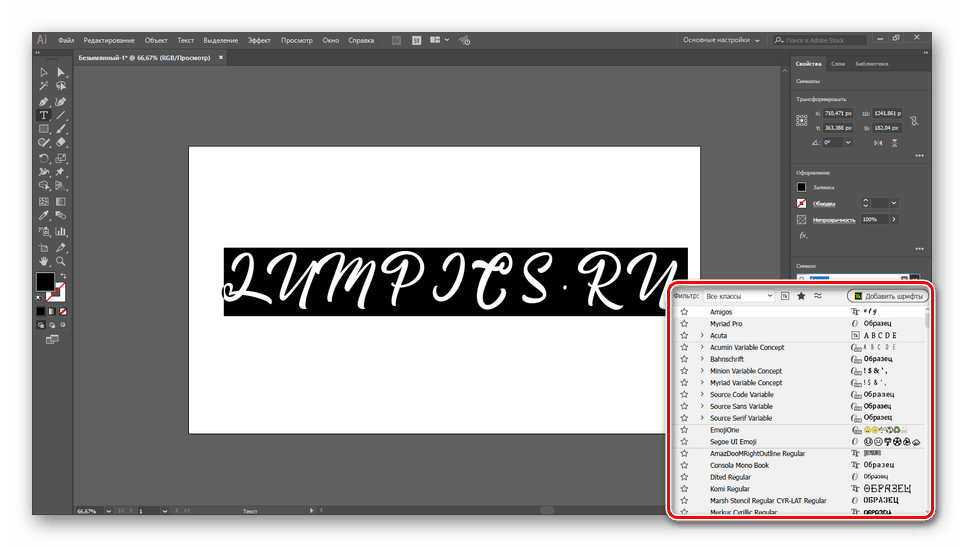 Установка шрифтов в Illustrator