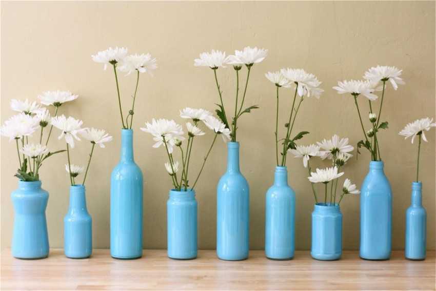 Стеклянные бутылки обычной формы можно украсить снаружи. Для этого есть несколько простых, но в то же время увлекательных способов: