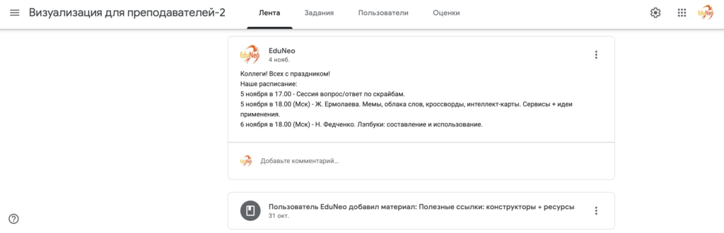 ! Основная «фишка» – Лента совместной работы. Google Classroom следует рассматривать именно как среду для совместной деятельности.