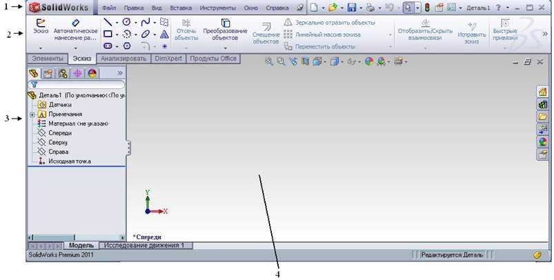 модель. Рисование эскиза осуществляется с помощью геометрических примитивов,