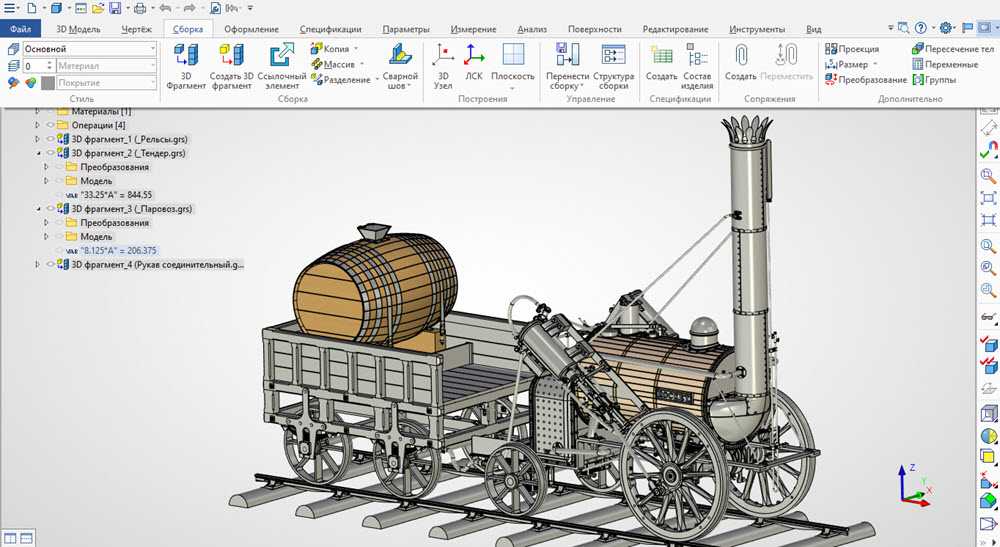 На конкурс «Компетенция САПР 2021» Дмитрий представил 3D модель паровоза «Ракета», построенного в 1829 году отцом и сыном Джорджем и Робертом Стефенсонами. Абсолютно все работы по 3D моделированию выполнены в Учебной версии T-FLEX CAD, при этом проект был начат в 16-й версии, а закончен уже в 17-й. Мы не могли не отметить такую высокую степень детализации и проработки проекта. Примечательно, что модель на 99 % выполнена в дюймовых размерах, так как основой для 3D реконструкции послужили чертежи, купленные в Англии в музее железнодорожной техники.