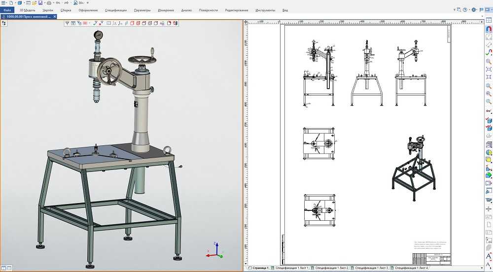 Номинация «Эксперт» — 3 место. Модель и чертёж ручного пресса.