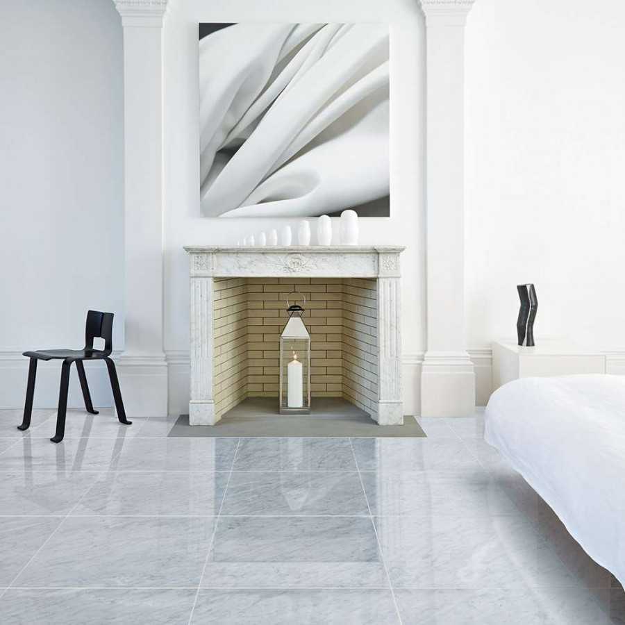 Блики на полу из мрамора делают этот интерьер светлее и уютнее
