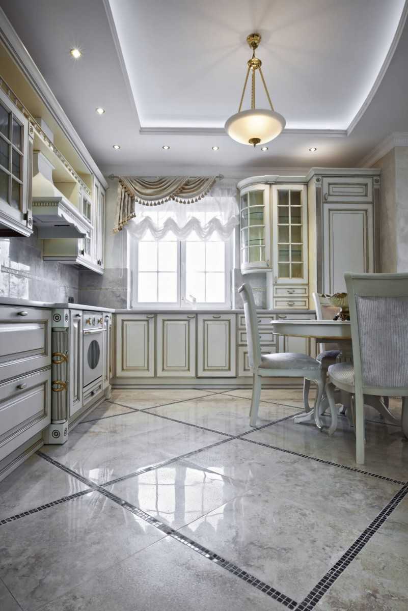 - при использовании на кухни оптимальным вариантом считается приобретение керамогранитного мрамора бежевого либо белого цветового оттенка;