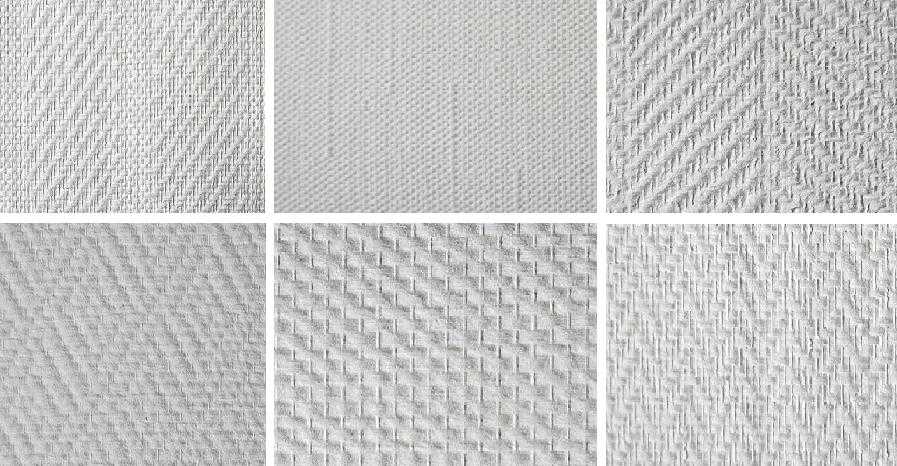 Варианты фактуры стеклообоев.