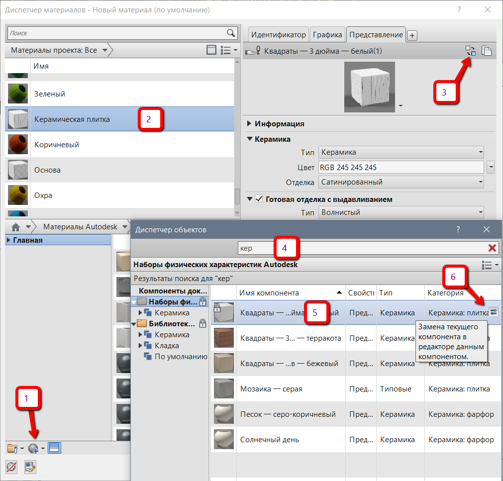 Нам потребуется Керамика, в строке поиска набираем первые буквы (4)