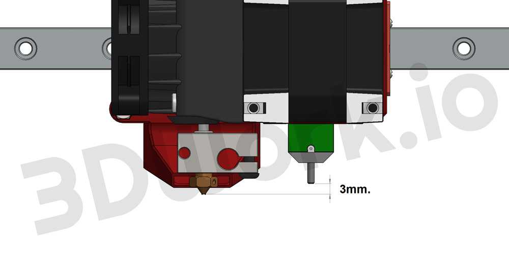 It is logically has to be within its range of action. When the probe is retracted, it must be above the nozzle (otherwise we will have problems). And when it is extended, it must lower several millimeters below the nozzle to be able to act.
