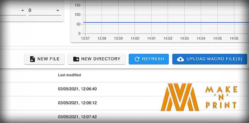 Without a doubt, the Duet Web Control makes creating new macro files a doddle. Start by clicking on the Macros icon on the left-hand toolbar. Then click on the NEW FILE icon. You will then need to give the new macro command a name, pick one that best describes the purpose of the macro. For example, Deploy Probe would be a perfect name for a macro that sends the command for a BLTouch to deploy its Probe.