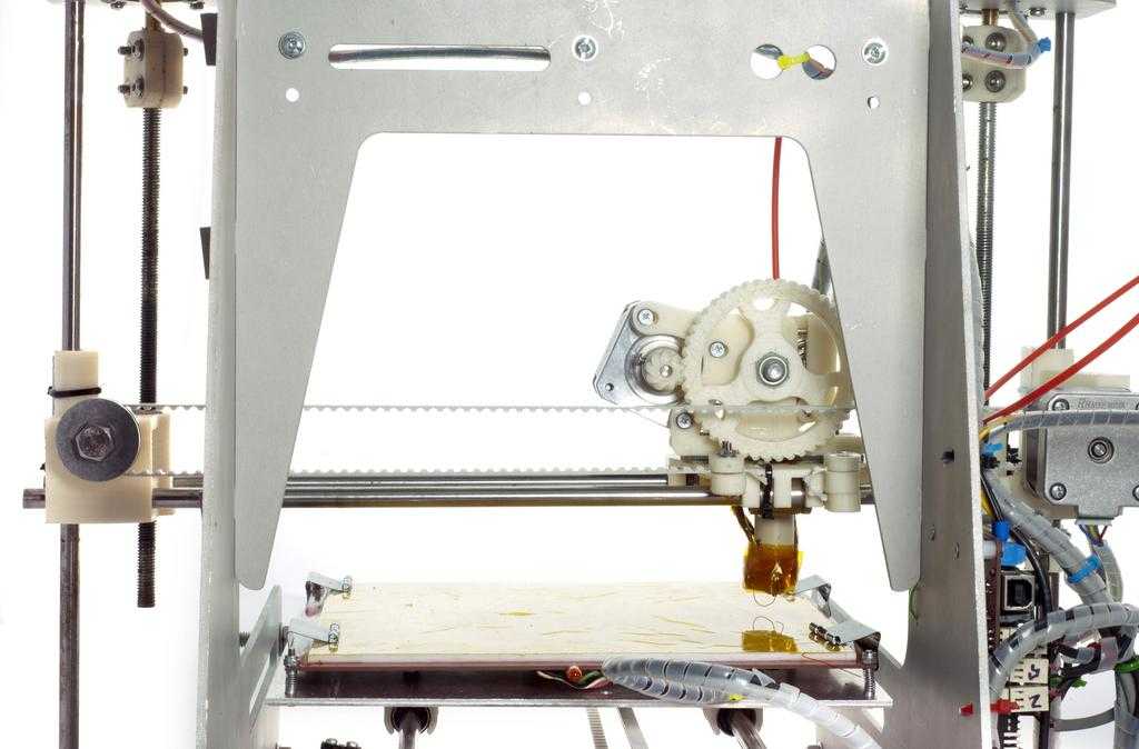 Разновидностью печатающей головки является боуден экструдер, который отличается тем, что hot-end и cool-end разнесены с точки зрения расположения: нагреватель с соплом располагаются на печатающей голпринтер промышленныйовке, в то время как подающее устройство расположено на раме принтера. Пластиковая нить подается посредством длинной тефлоновой трубки. Главное ее назначение – оберегать нить от возможных изгибов, чтобы она подавалась в hot-endс оптимальной скоростью и давлением. Боуден экструдер хорош тем, что позволяет сделать меньше и легче печатающую головку, но с другой стороны, передача пластика к соплу не так надежна.