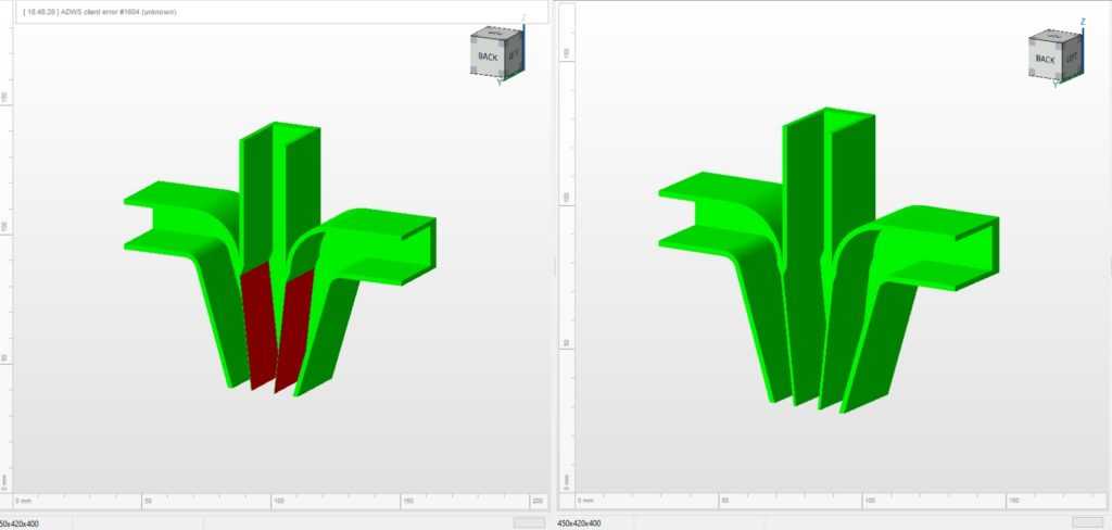 Аналогично с предыдущей ситуации слева мы можем увидеть критично малую толщину стенки.
