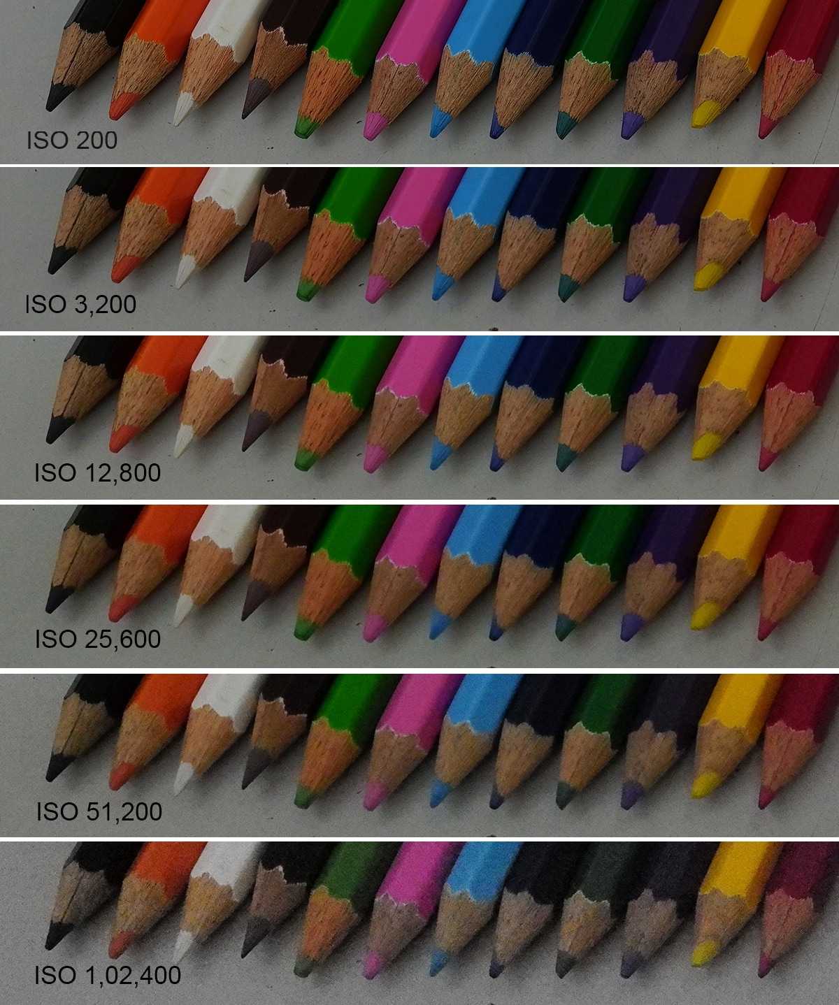 Тем не менее, уровень шума все еще был под контролем. При максимальном стандартном ISO 25 600 детали и текстуры выглядели заметно сглаженными, а резкость была значительно снижена. Проходя через расширенный диапазон ISO, мы увидели, что качество изображения все еще можно восстановить до ISO 51,200.