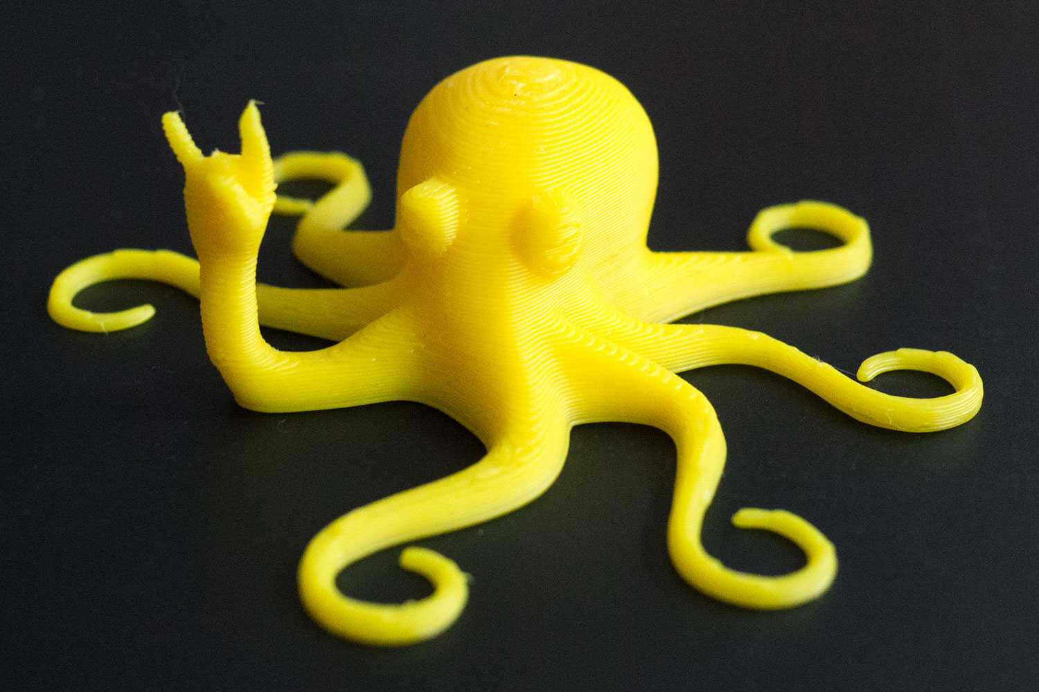После установки программное обеспечение Cura автоматически загружает тестовую модель для первого отпечатка. LulzBot включает небольшое количество нити HDPS для этого теста, но недостаточно для печати чего-либо еще. У нас был привлекательный, чистый отпечаток чудесно названной модели Rocktopus в короткие сроки.