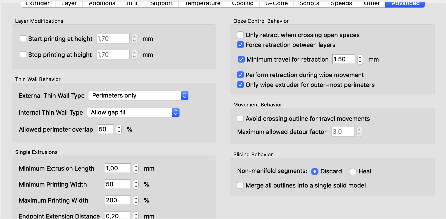 Slicing behavior – Дополнительные параметры слайсера