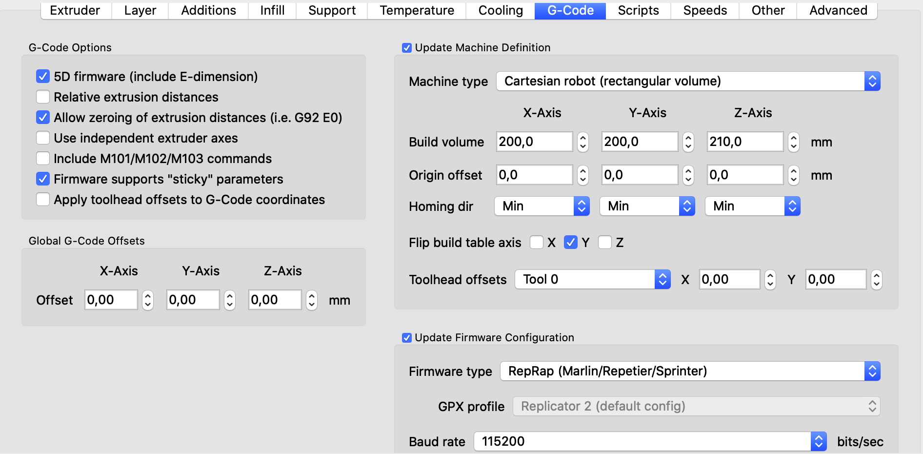 Вкладка G-Code