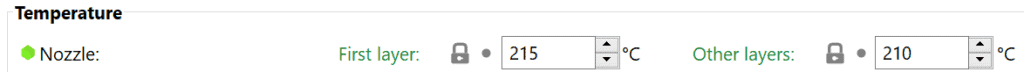 Temperature: If you are working with normal extrusion widths, you can leave the temperature at the default value of your filament. If you want to increase the width, you also have to increase the temperature. If you increase the extrusion width to 0.6 mm with a 0.4 mm nozzle like in the example above, you should increase the temperature in 5 °C steps until you get the right result.