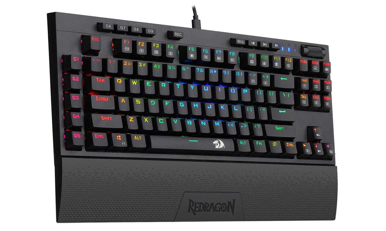 Клавиатура компактная, очень удобная для рук, кисти не устают, есть подставка. На основных клавишах свитчи синие, на замену дается несколько красных, черных и коричневых, можно заменить на игровых клавишах. Буквы видно хорошо, макросы расположены непривычно. Ход мягкий, шума не создает, есть быстрые клавиши для стандартных действий.