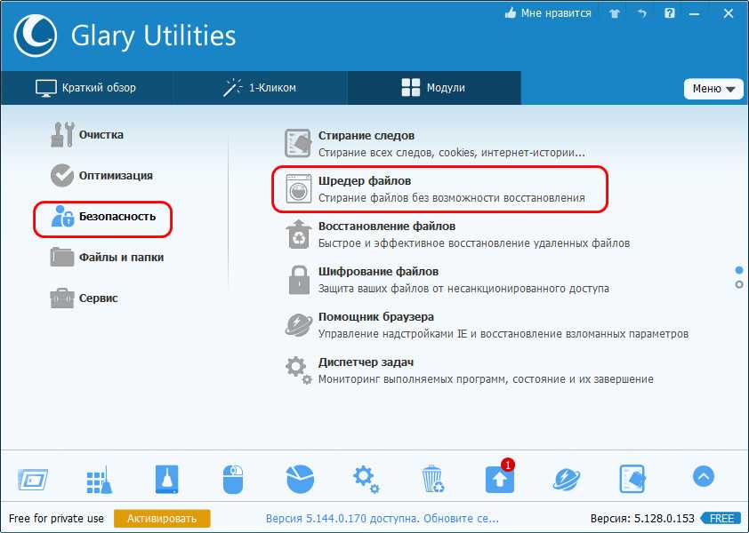 Но в любом случае – стирали ли мы следы пребывания, либо же переустановили Windows – после того, как мы удалим на всех разделах диска свои личные данные и очистим корзину, в окне Glary Utilities идём в раздел «Безопасность».