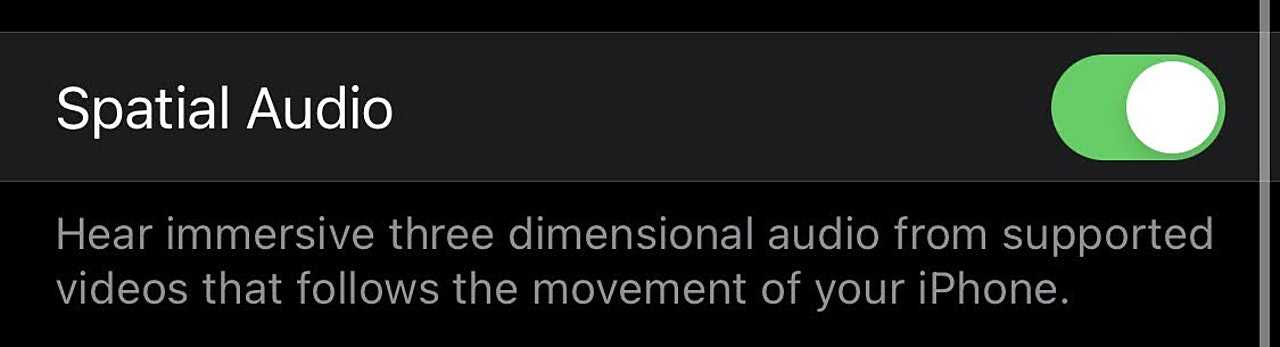 Прокрутите вниз до следующего экрана и отключите параметр «Пространственное аудио», нажав его (зеленую) кнопку-переключатель.