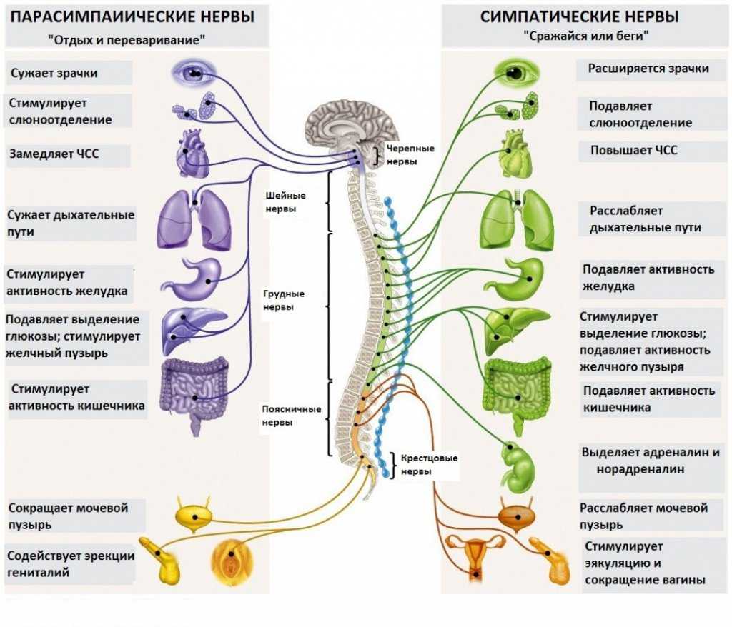 С другой стороны, ПНС действует прямо противоположно и отвечает за понижение ЧСС и артериального давления при отсутствии стресса. По сути, ПНС способствует восстановлению после стрессовых событий (например, соревнований), противодействуя влиянию СНС (18).