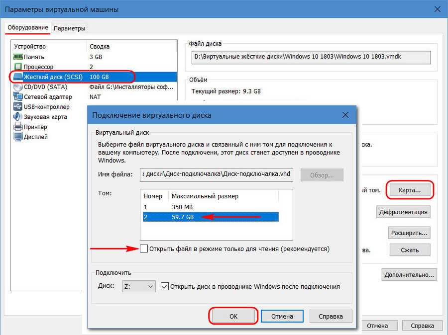 Чтобы подключить к гостевой системе папку для обмена файлами с основной, кликните в меню «Устройства» пункт «Общие папки». Нажмите на значок «папка+» в открывшемся окне и через поле «путь к папке» укажите ее в проводнике (в нем показаны каталоги основной системы).