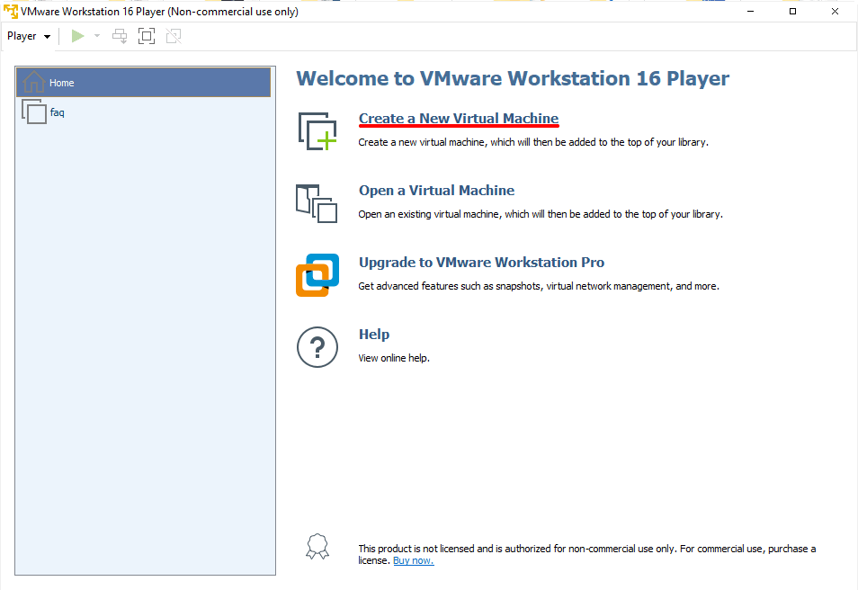 Нажмите Create a New Virtual Machine, чтобы создать новую виртуальную машину: