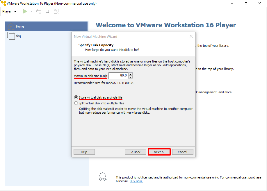 «Maximum disk size» — это максимальный размер дискового пространства, которое будет выделено для гостевой операционной системы. Мы рекомендуем выбрать объём — 80 ГБ.