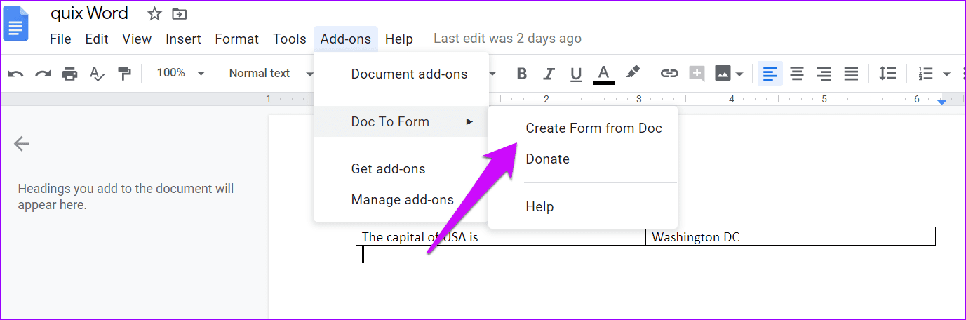 To do so, you will need the help of an Add-on aptly named Doc to Form. For now, it’s free and the process to create forms is also simple.