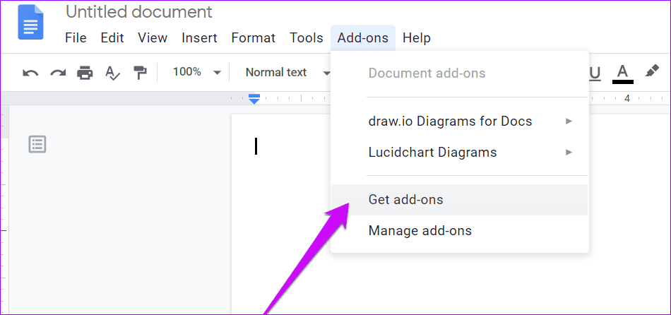 Step 1: For that, open a new document and navigate to Add-on button > Get add-ons.