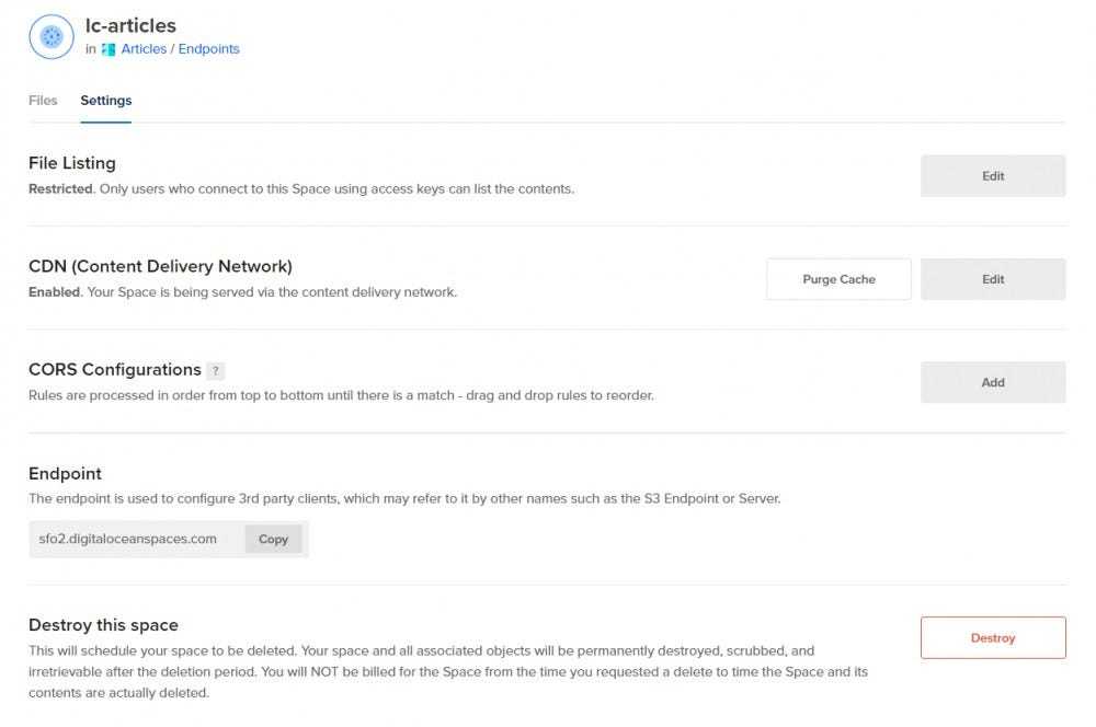 So, if you serve assets for the web from Spaces, enabling CDN can improve performance almost ten times. If you use another CDN service, then it is better to disable the in-built CDN as it can cause network confusions.
