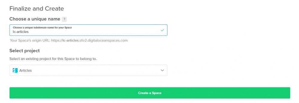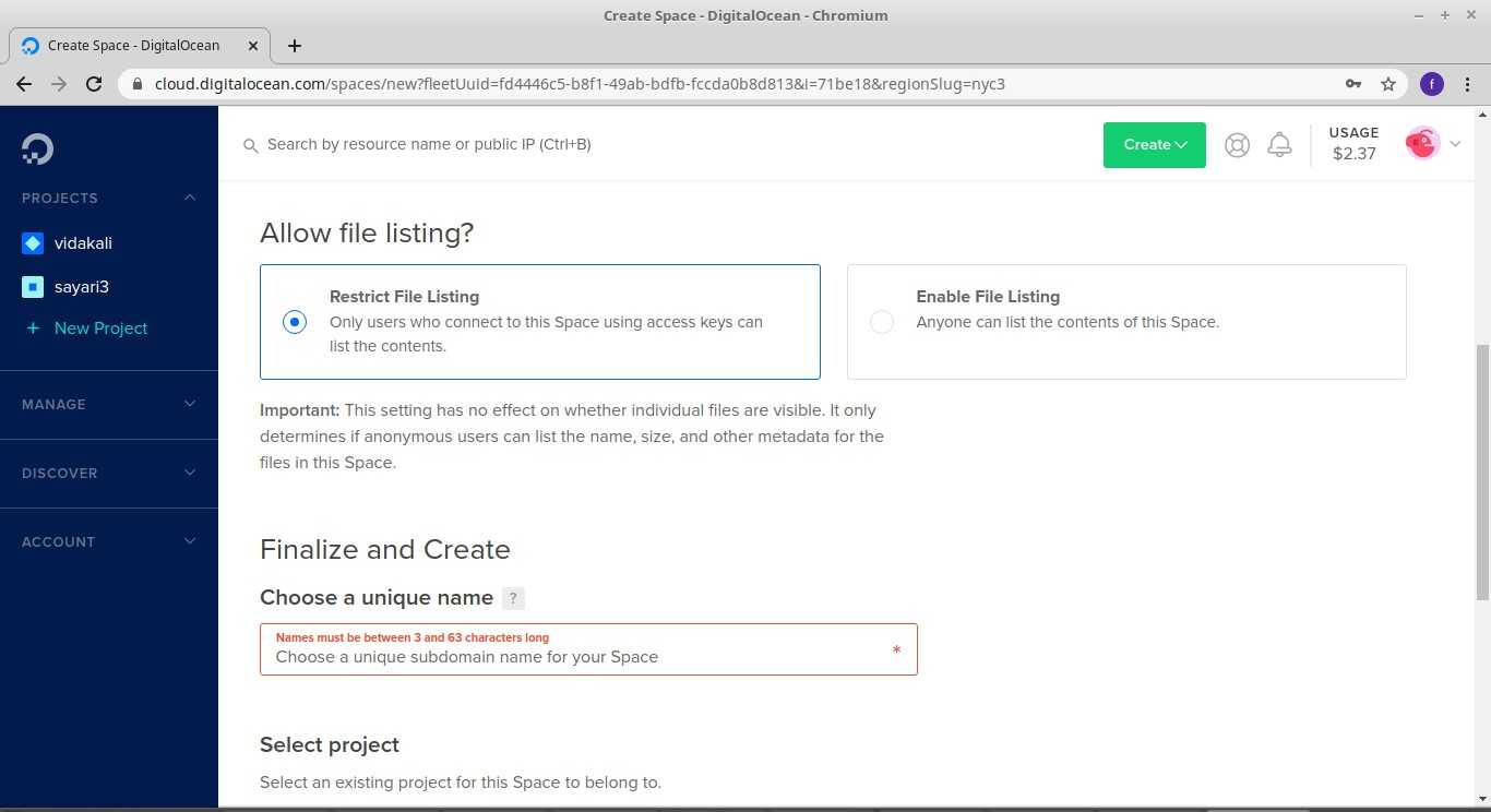 I named mine our-project-space , I chose same name for my space and bucket name.