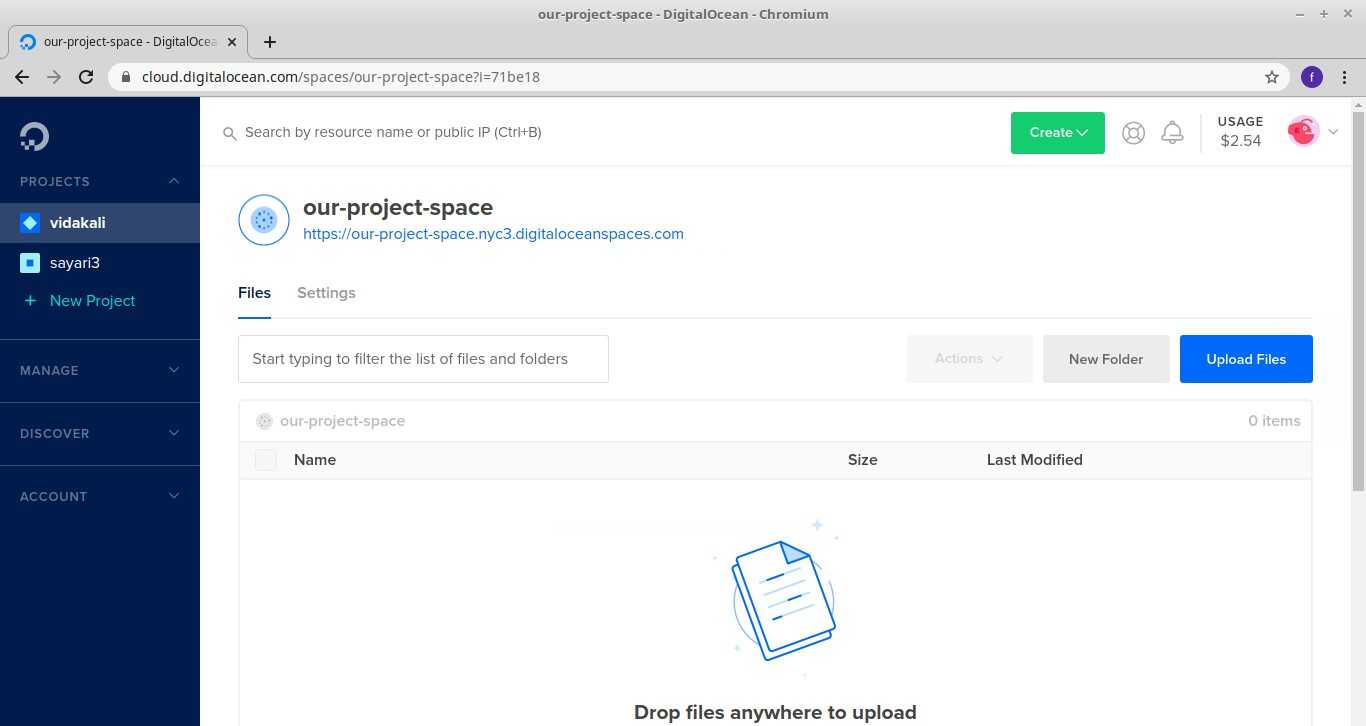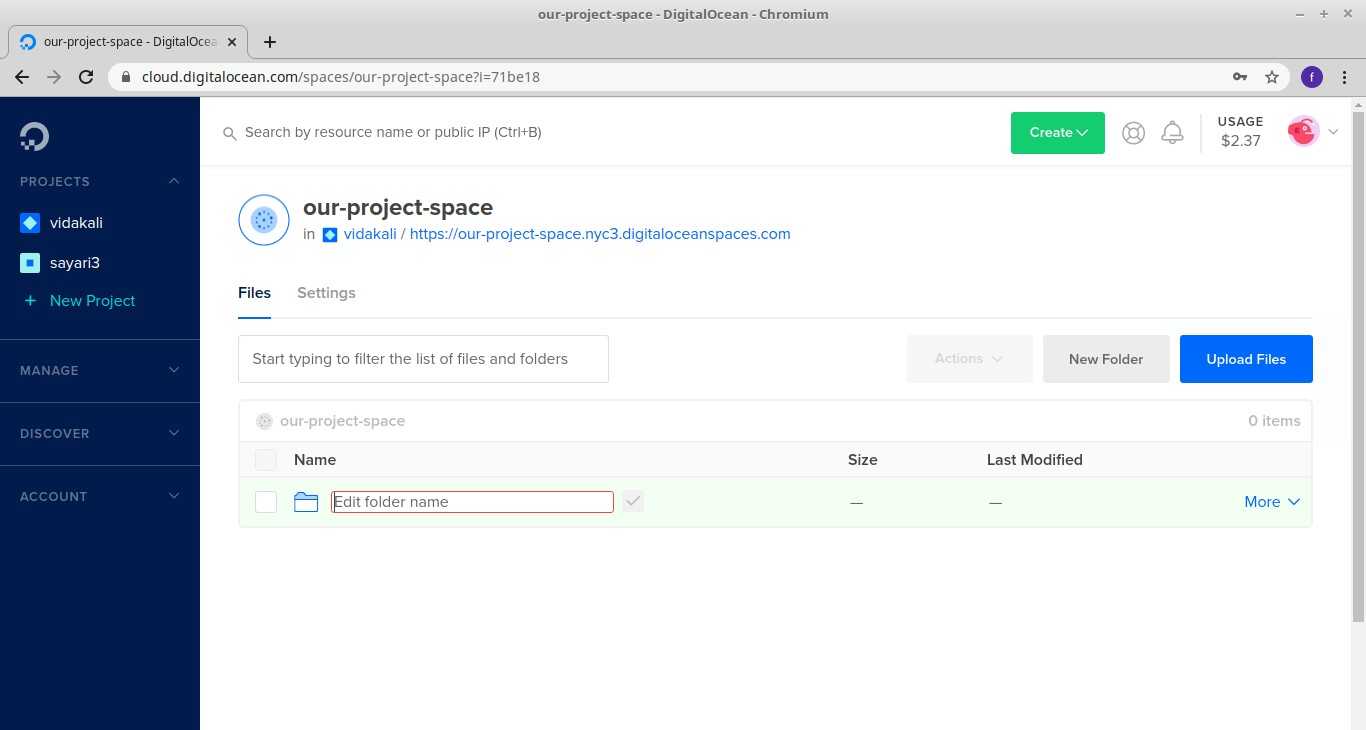 With out newly created Area, you will notice that there aren’t any recordsdata however by means of the interface, we will simply add recordsdata or create folders as vital.