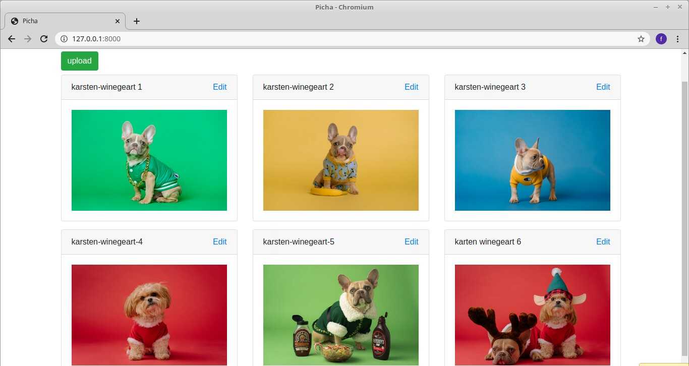 I have already prepared a Django app for you to test this , you can find it here : https://github.com/felix13/picha