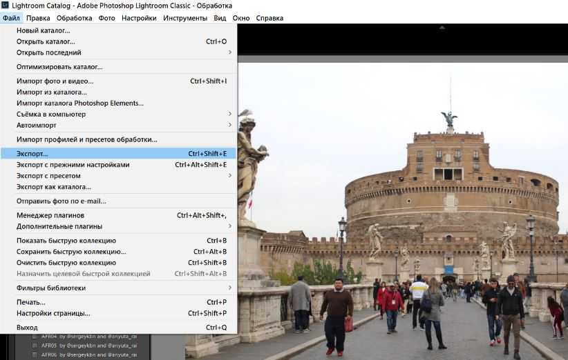 Функция, которая отвечает в Lightroom за сохранение фотографии называется экспорт. Ее можно найти в меню «Файл». После того как вы завершили обработку снимка сохранить фотографию в Лайтруме можно проделав следующие шаги: