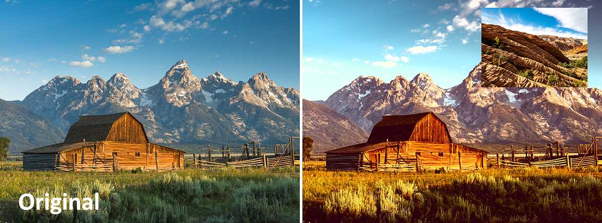 Передача цвета — это новый нейронный фильтр, который берет цветовую палитру одного изображения и позволяет легко применить ее к другому изображению. По словам Adobe, «сделайте это изображение таким».