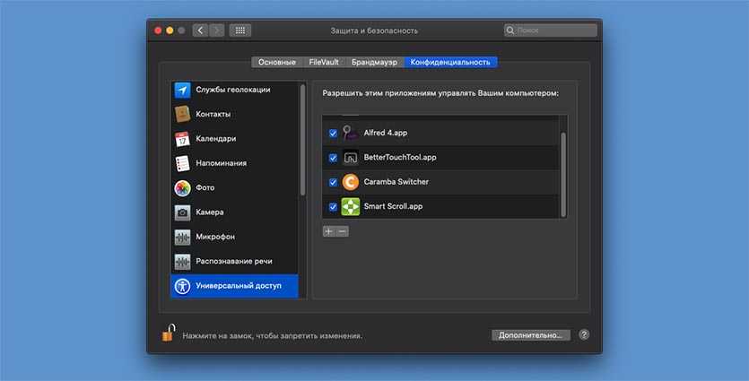 3. Переходим в Системные настройки – Защита и безопасность – Универсальный доступ.