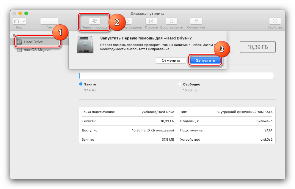 Проверить состояние диска перед установкой macOS