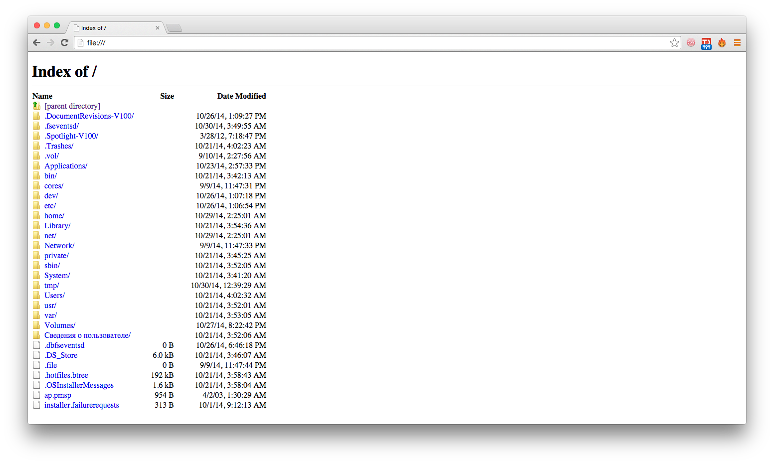 Это не будет самой востребованной функцией Google Chrome, но тем не менее использовать свой браузер как файловый менеджер также можно. Просто вводим C:/ на Windows или file://localhost на Mac и Linux. На последних двух платформах можно также использовать удобное сокращение file:///.