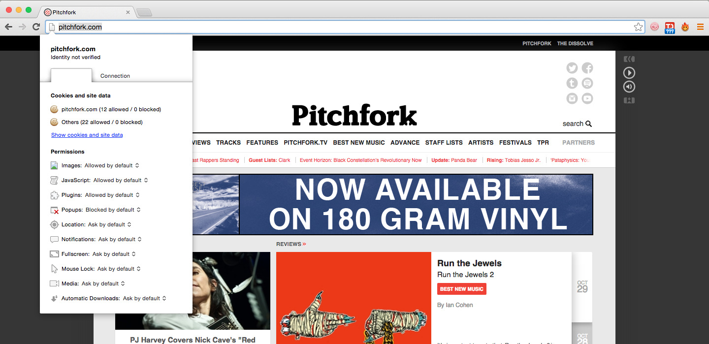 Если сайт, который ты посещаешь, кажется подозрительным, то контролируй всё, что он будет делать в браузере, нажав на иконку страницы, расположенную слева от адреса веб-сайта. Там можно узнать информацию об используемых cookies, а также заблокировать JavaScript, всплывающие окна и многое другое.