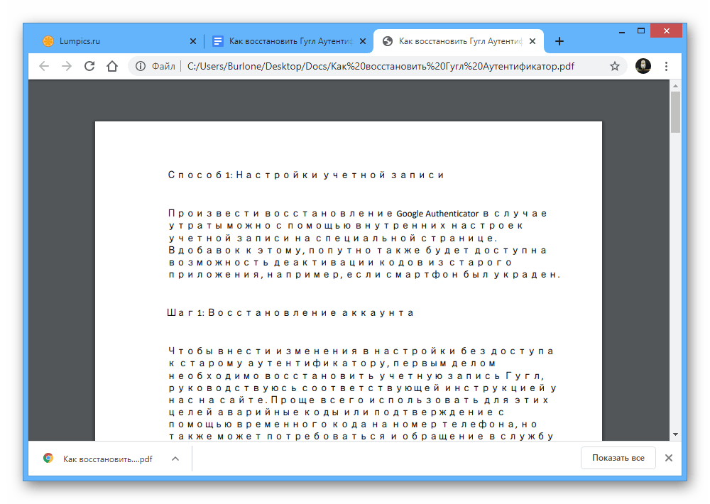 Сразу после этого в автоматическом режиме начнется скачивание документа в память устройства. Найти итоговый PDF-файл вы сможете или воспользовавшись шторкой, или открыв системную папку «Download» в памяти телефона.