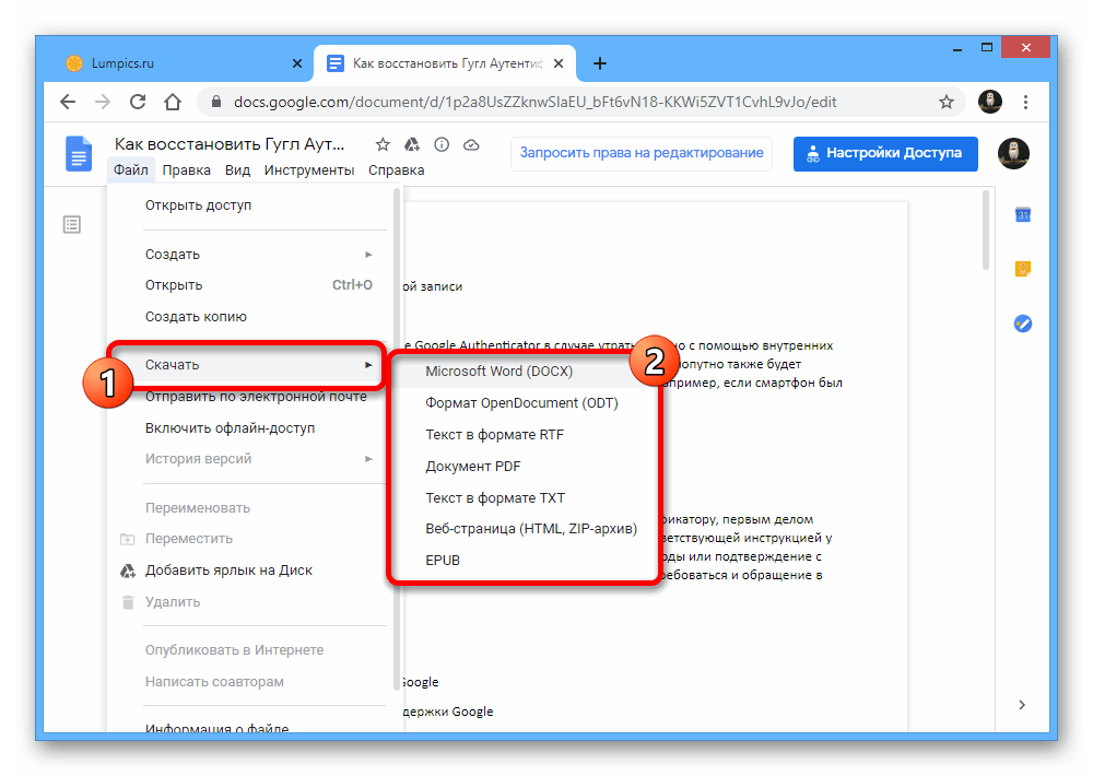 Как сохранить документ в Гугл Документы