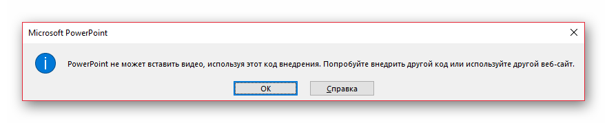 Иногда ни один вариант вставить видео в презентацию не работает. Такая ошибка может выскакивать по следующим причинам: