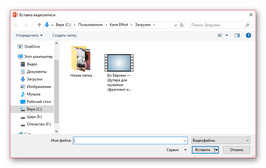 Если видео присутствует на компьютере, то вставить его можно намного проще – попросту перетащить из папки на слайд в презентации.